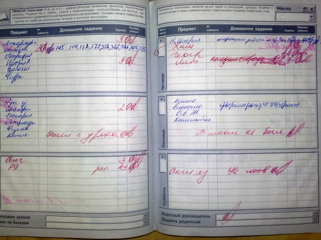 Перед выполнением домашней работы необходимо проводить работу над ошибками (задания на полях обозначены р. о.). После работы над ошибками – 4 клетки вниз (математика) или 2 узкие строчки вниз (русский язык) – число, домашняя работа.
