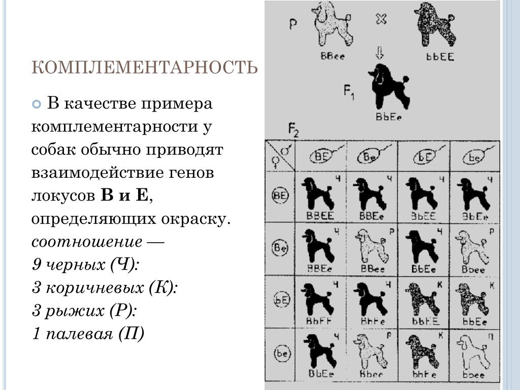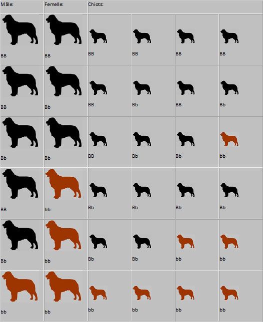 Локус В ЛокусB создает коричневый цвет шерсти собаки, также называемый печеночным. Он влияет только на эумеланин, в результате чего все черные цвета в шерсти становятся коричневатыми.Он выражается рецессивным геном, поэтому собака должна быть гомозиготной (генотип bb), чтобы быть коричневой. У коричневого щенка могут быть черные родители, которые в этом случае будут гетерозиготными (генотип Bb), где щенок унаследовал по одной копии гена b от каждого родителя. Генетически невозможно, чтобы у собаки печеночного окраса были какие-либо черные волосы на шерсти, а у черной или голубой собаки не могло быть печени на шерсти. В зависимости от аллелей в локусе А и К у коричневых собак может быть выражено некоторое количество рыжих (феомеланиновых) волос.Он также влияет на цвет носа и глаз, делая глаза светло-карими или янтарными, а нос коричневым. Коричневым может быть вся шерсть, только на некоторых участках шерсти или в определенных узорах, таких как сплошная печенка, печенка с белыми отметинами, пегий с чалым, печенка с традиционными подпалинами, печень серого/агути, печеночный мерль, печеночный соболь, печеночный с генами седины и рыжим окрасом собак с печеночным пигментом.