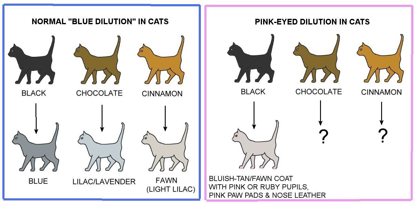 Место D ЛокусD содержит ген разбавления, который является рецессивным, поэтому ген d является разбавлением, а ген D не является разведением.Это означает, что для того, чтобы собака была разбавленной, она должна быть гомозиготной (генотип dd), а если она гетерозиготная (генотип Dd), то у нее будет нормальная, не разбавленная пигментация. Ген разведения влияет как на эумеланин, так и на феомеланин. При гомозиготности с геном разбавления черная собака становится голубой, а печеночная собака становится изабеллой. Ген влияет также на цвет носа и глаз. У голубых собак нос окрашен в синий цвет, а у изабелловых собак он немного темнее печеночного. Глаза станут янтарными.