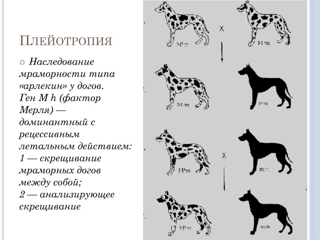 Две версии гена могут смешиваться, что называется смешанным наследованием; давая континуум возможностей (например, цвет шерсти собаки, цвет глаз, рост и т. д.)Доминантные фенотипы являются результатом доминантного аллеля, и требуется только одна копия от одного из родителей. Однако для того, чтобы рецессивный фенотип был произведен рецессивным аллелем, необходимы две копии, по одной от каждого родителя, что называется гомозиготным.Если присутствуют как доминантные, так и рецессивные аллели, говорят, что человек имеет доминантный фенотип . Однако, если аллели одинаковы и не проявляются ни как доминантные, ни как рецессивные, говорят, что это кодоминантность . Если имеется более одного рецессивного или более одного доминантного аллеля, то порядок доминирования будет определяться таким образом, что один из двух рецессивных признаков будет более доминантным, чем другой. Это распространенное заблуждение, что наличие доминантных аллелей обязательно означает, что они лучше, и это не означает, что они более распространены, чем рецессивные признаки.