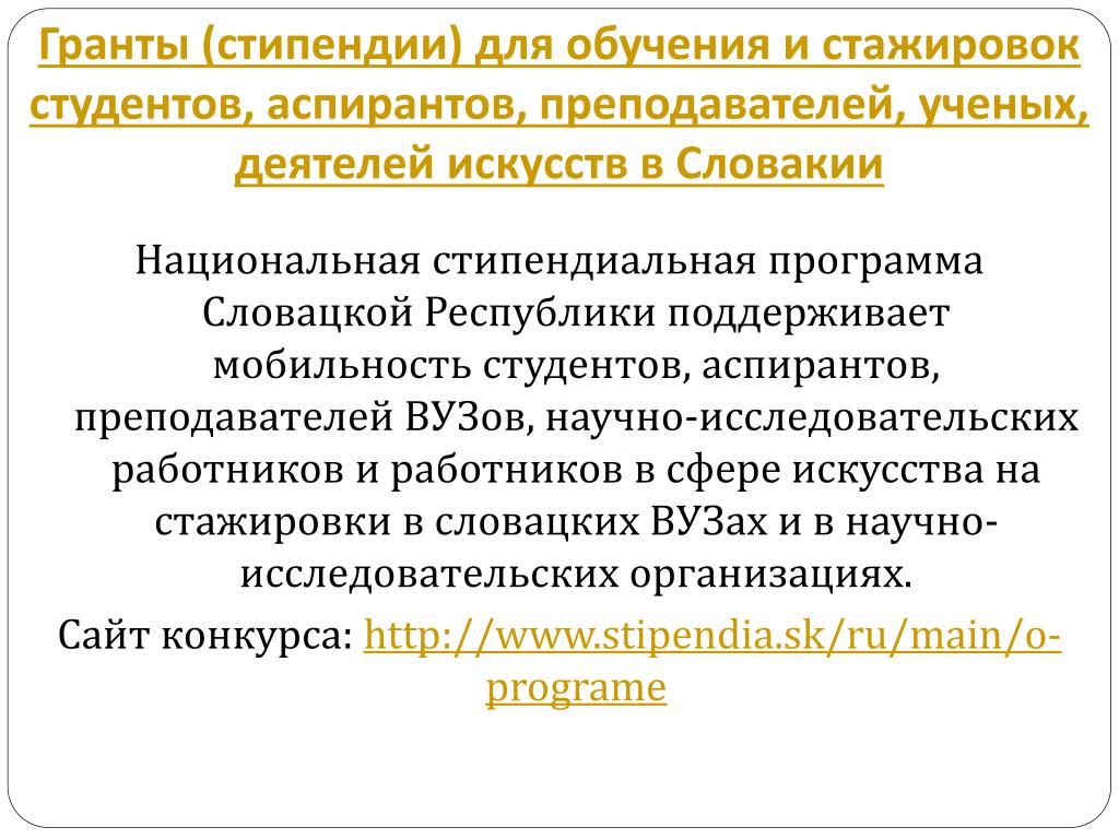 Большинство программ ориентированы на студентов, аспирантов и молодых ученых, обладающих высоким уровнем знаний иностранных языков, подтвержденным международными сертификатами.