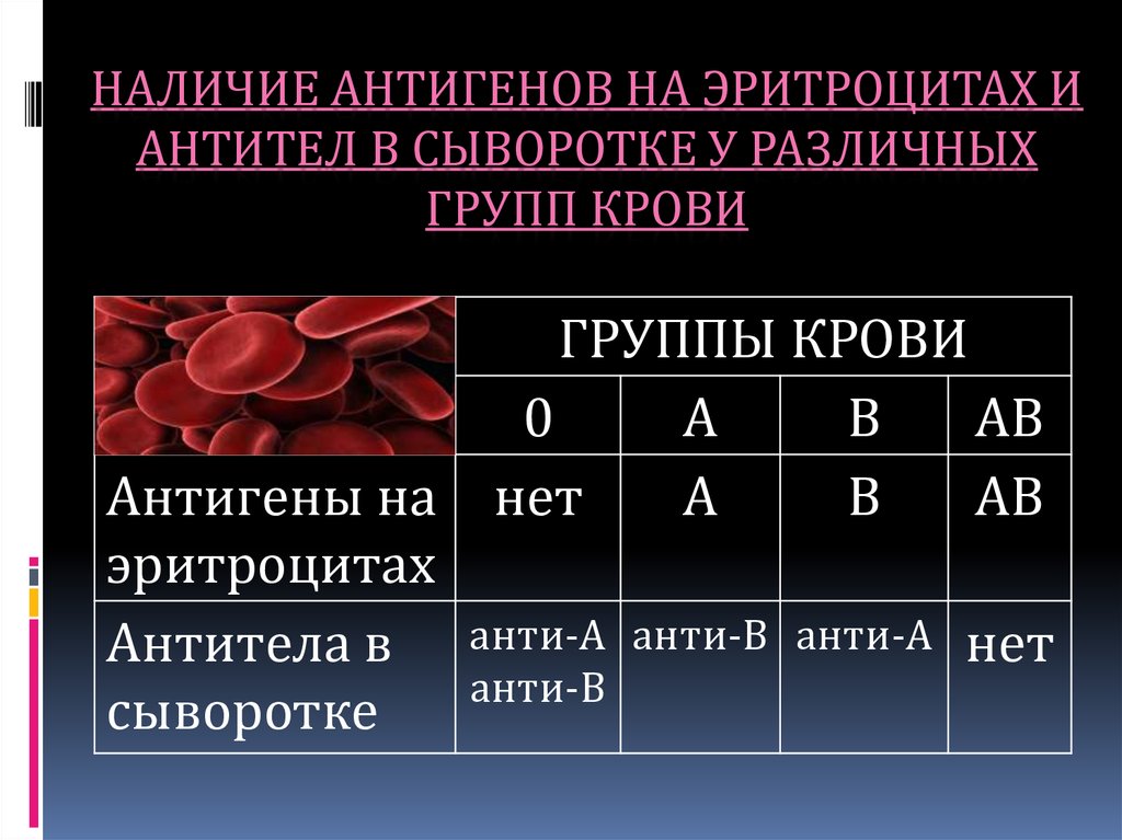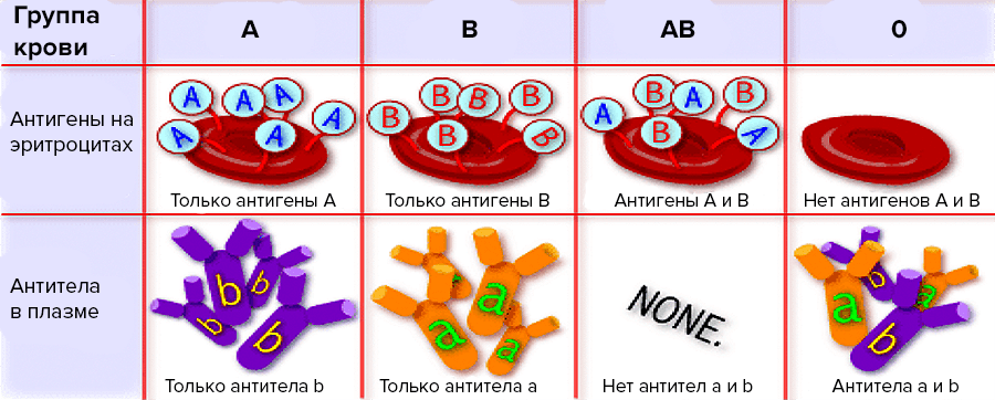 , ΡΠΎΠ³Π΄Π° ΠΊΠ°ΠΊ Π»ΡΠ΄ΠΈ Ρ Π³ΡΡΠΏΠΏΠΎΠΉ ΠΊΡΠΎΠ²ΠΈ B ΠΈΠΌΠ΅ΡΡ Π°Π½ΡΠΈΠ³Π΅Π½Ρ B. Π’Π΅, Ρ ΠΊΠΎΠ³ΠΎ ΠΊΡΠΎΠ²Ρ AB, ΠΈΠΌΠ΅ΡΡ ΠΊΠ°ΠΊ Π°Π½ΡΠΈΠ³Π΅Π½Ρ A, ΡΠ°ΠΊ ΠΈ B, Π° ΡΠ΅, Ρ ΠΊΠΎΠ³ΠΎ ΠΊΡΠΎΠ²Ρ Π³ΡΡΠΏΠΏΡ O, Π½Π΅ ΠΈΠΌΠ΅ΡΡ Π½ΠΈ Π°Π½ΡΠΈΠ³Π΅Π½ΠΎΠ² A, Π½ΠΈ B. ΠΠ»Π°Π·ΠΌΠ° ΠΊΡΠΎΠ²ΠΈ ΡΠΎΠ΄Π΅ΡΠΆΠΈΡ ΠΏΡΠ΅Π΄Π²Π°ΡΠΈΡΠ΅Π»ΡΠ½ΠΎ ΡΡΠΎΡΠΌΠΈΡΠΎΠ²Π°Π½Π½ΡΠ΅ Π°Π½ΡΠΈΡΠ΅Π»Π° ΠΏΡΠΎΡΠΈΠ² Π°Π½ΡΠΈΠ³Π΅Π½ΠΎΠ², ΠΎΡΡΡΡΡΡΠ²ΡΡΡΠΈΡ