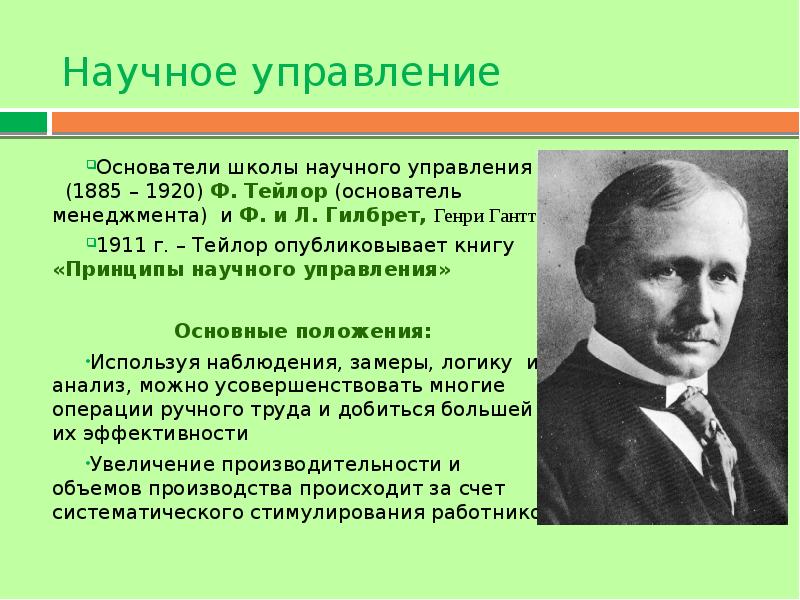Теория научного менеджмента Ф. Тейлора.
