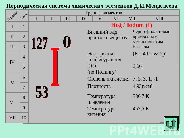 Йод | я | 53 | 2,66 | 126, | (3) | 10.45126 | 140 | 198 | 133 | 7 |