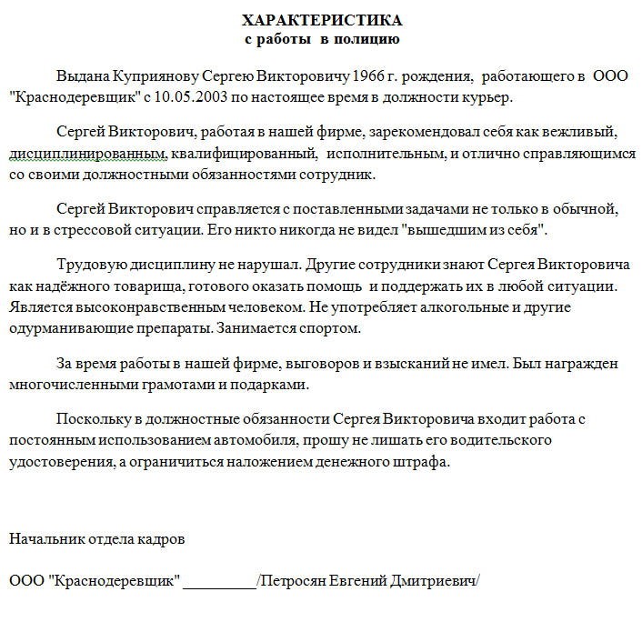 Характеристика не имеет установленной формы, она составляется в произвольном виде на фирменном бланке компании. В ней следует указать: