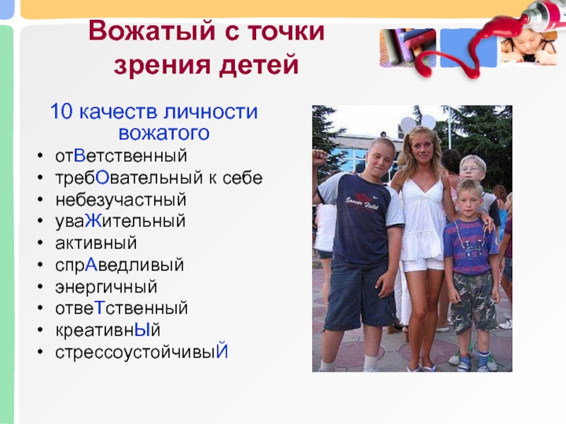 Творческие мастерские, должностные обязанности отрядного вожатого детского оздоровительного лагеря.