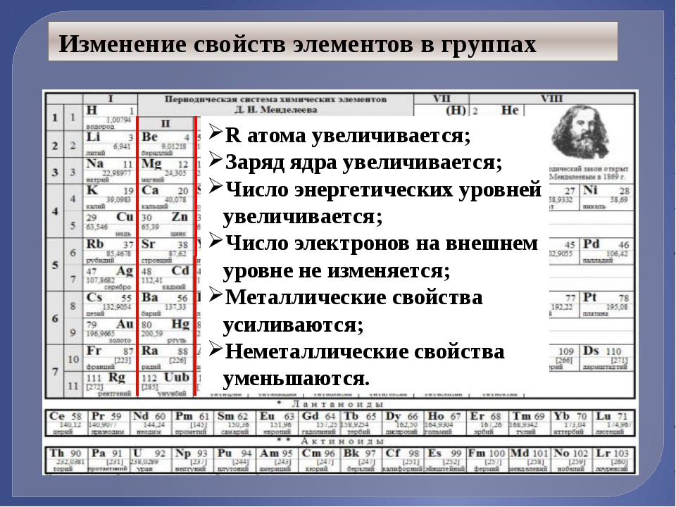 Кислотные свойства этих соединений изменяются в обратном направлении. Неметаллические свойства в периоде, как правило усиливаются слева направо, а в подгруппе – ослабевают сверху вниз, металлические – наоборот.