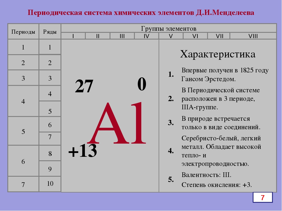 Знаки неметаллических химических элементов выделены красным и фиолетовым цветом.