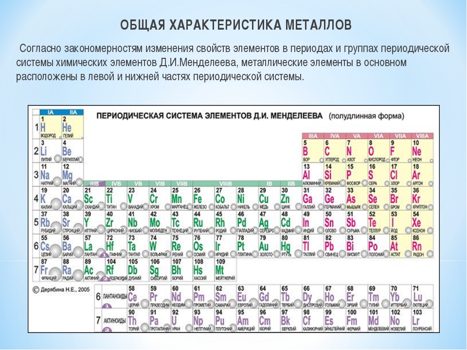 Из \(118\) известных на данный момент химических элементов \(96\) являются металлическими, и только \(22\) химических элемента относятся к неметаллическим.