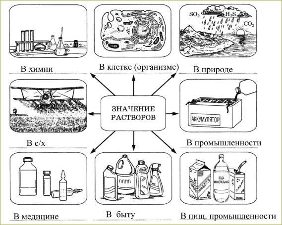 В строении всех живых организмов присутствуют растворы. Растворами являются все важнейшие физиологические жидкости (кровь, лимфа, внутриклеточные жидкости и т.д.). Процессы усвоения пищи человеком и животными, так же связаны с переводом питательных веществ в раствор.