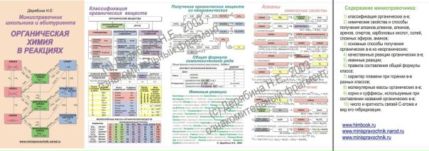 Справочное пособие предназначено учащимся общеобразовательных школ. В наглядных таблицах и схемах изложен материал школьной программы по органической химии, который можно использовать для подготовки к урокам, контрольным и самостоятельным работам.А также для абитуриентов при подготовке к экзаменам.