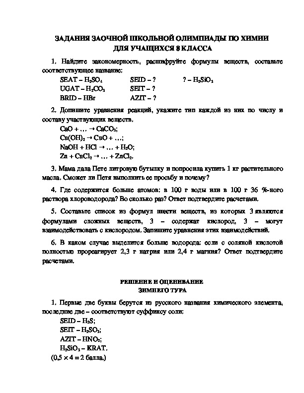Пригласительный школьный этап Всероссийской олимпиады школьников 2020: Химия