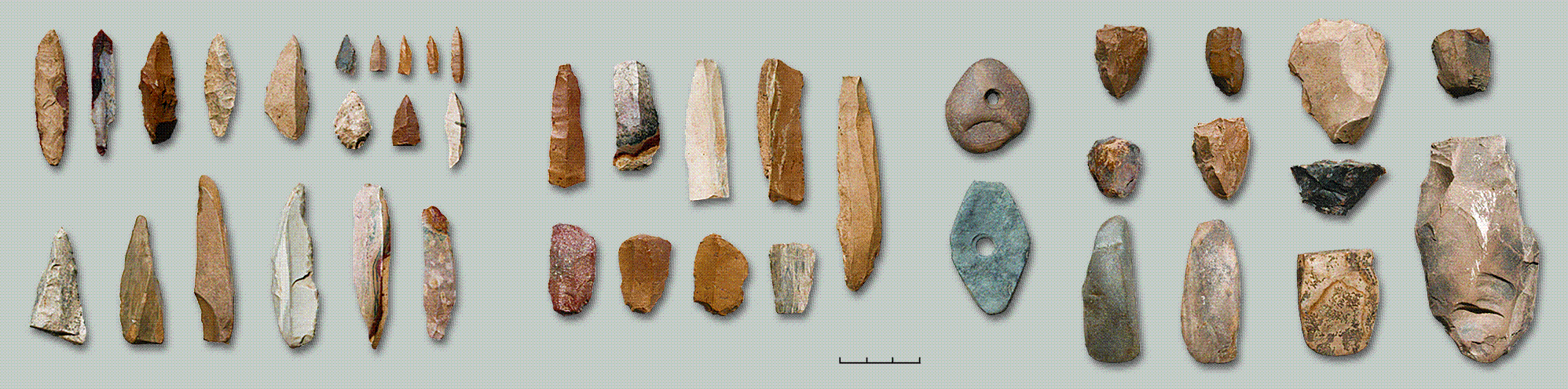 Есть оригинальные орудия на гальках типа чопперов. Все это придает данному культурному слою определенные отличия от других культурных слоев стоянки.