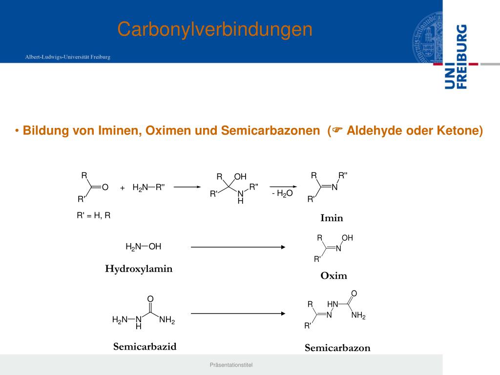 2.1.1 Гидролиз иминов. Имины легко гидролизуются в кислой или щелочной среде, что позволяет отделить карбонильные соединения от соединений других классов и выделить их в чистом виде: