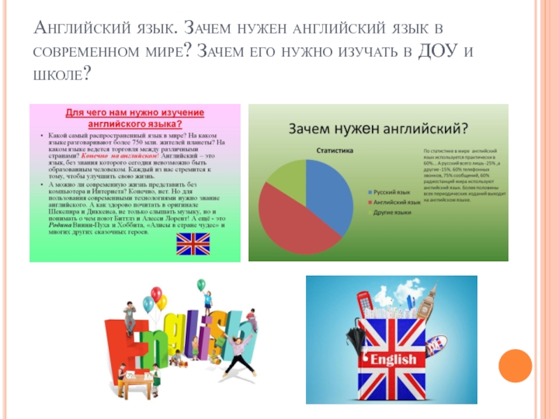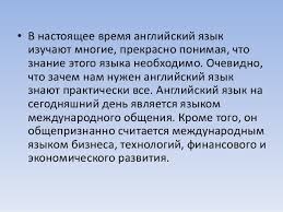 На сегодняшний день английский язык является одним из самых популярных языков мира. Приблизительно 1,5 млрд. человек владеет английским языком, и где-то 1 млрд. изучает его. Английский охватил все сферы жизнедеятельности человека: наука, средства массовой информации, учеба, работа и досуг. Поэтому вопрос «Зачем следует учить английский язык?» сегодня звучит несколько странно.