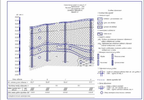 Разрезы являются детальным описанием инженерно-геологической разведки с наиболее полным отображением последующего строительства. Все данные отображаются посредством условных обозначений. При этом на карте следует отобразить: