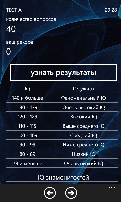 Диапазон нормы при прохождении теста Айзенка: 85-115 баллов. Набравшие 115-125 обладают уровнем интеллекта выше нормы, 125-135 – высоким уровнем интеллекта, более 135 – гениальны. А людей с IQ меньше 70 часто причисляют к умственно отсталым.