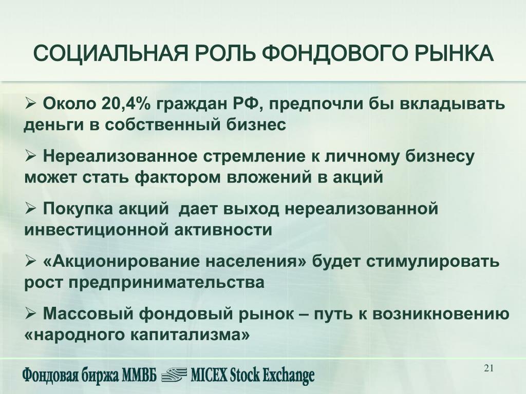В годы советской власти всеми финансами в стране управляли партийные органы. Поэтому долгие десятилетия условий для возрождения фондового рынка практически не было. Ситуация изменилась в 1991 году, когда Совет Министров РСФСР принял Постановление «Об утверждении Положения об акционерных обществах». Предприятия начали выпускать ценные бумаги, чтобы привлечь деньги инвесторов и вложить их в хозяйственный оборот.
