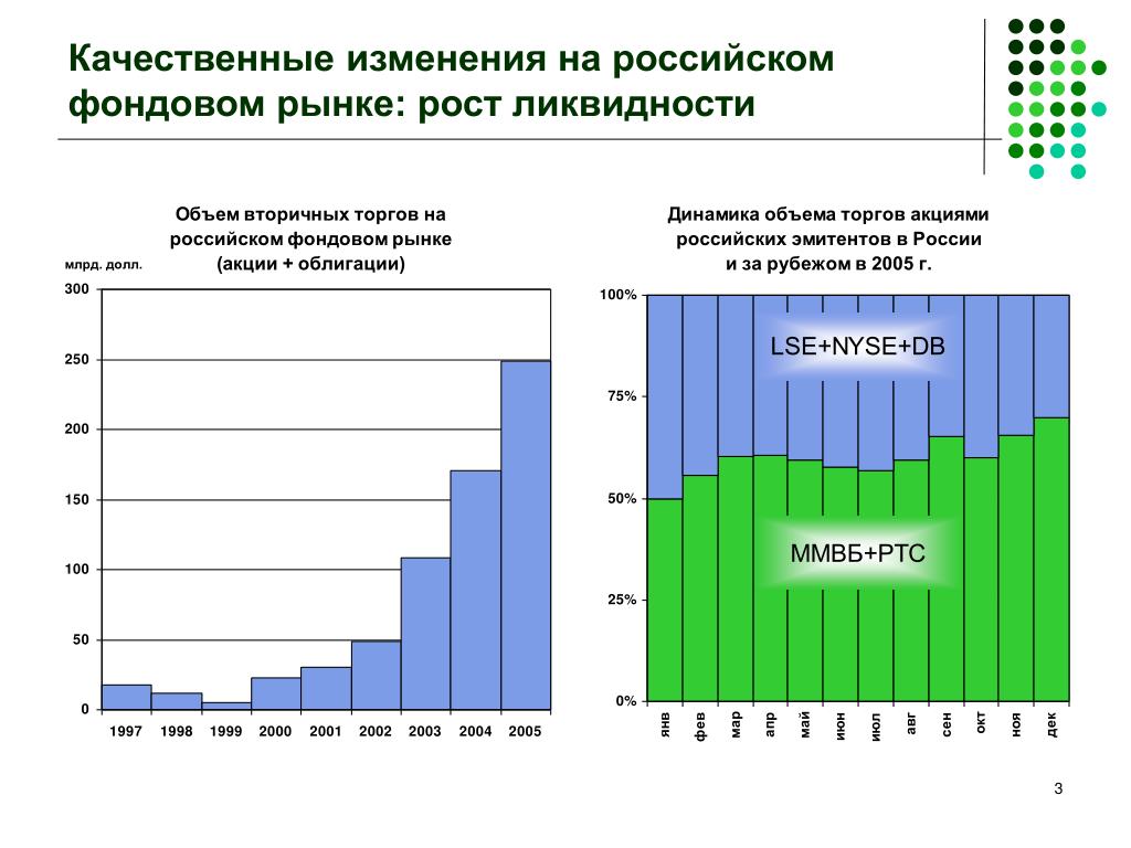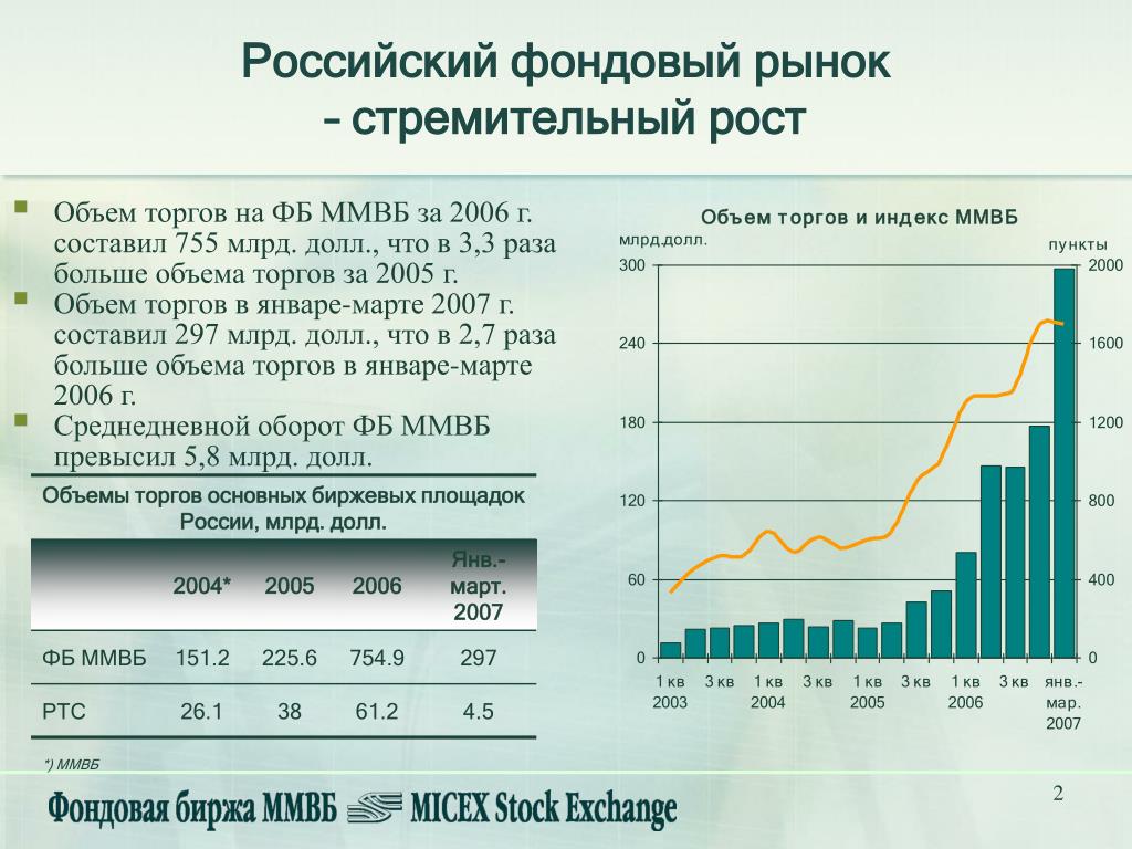 Возрождение началось в 1999 году, когда на фондовой бирже внедрили процедуру листинга ценных бумаг. Листингом называют допуск актива к торгам. Пройти процедуру могут только те компании, которые соответствуют строгим стандартам. То есть на рынке остались только надежные эмитенты. К 2001 году российский фондовый рынок постепенно вышел из кризисного состояния. Этому способствовали следующие факторы: укрепление законодательства в области фондовой торговли, рост цен на нефть, реструктуризация внутреннего и внешнего госдолга. В 2002 году на ММВБ началась торговля еврооблигациями.