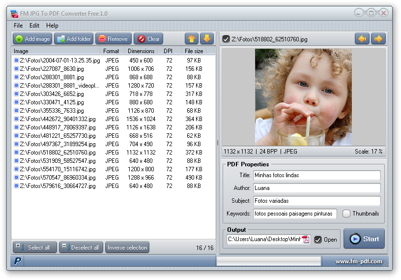 Фотографу было бы идеально объединить несколько файлов JPG в один PDF-файл, чтобы поделиться тематическими примерами своей работы.