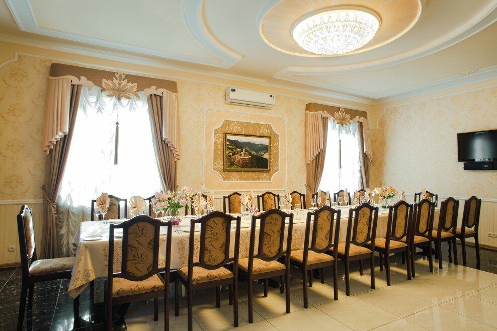 Банкетный зал на 100 человек, отдельный VIP зал. Танц пол световое сопровождение, живая музыка, Dj. Изысканная кухня, обслуживание банкетов.