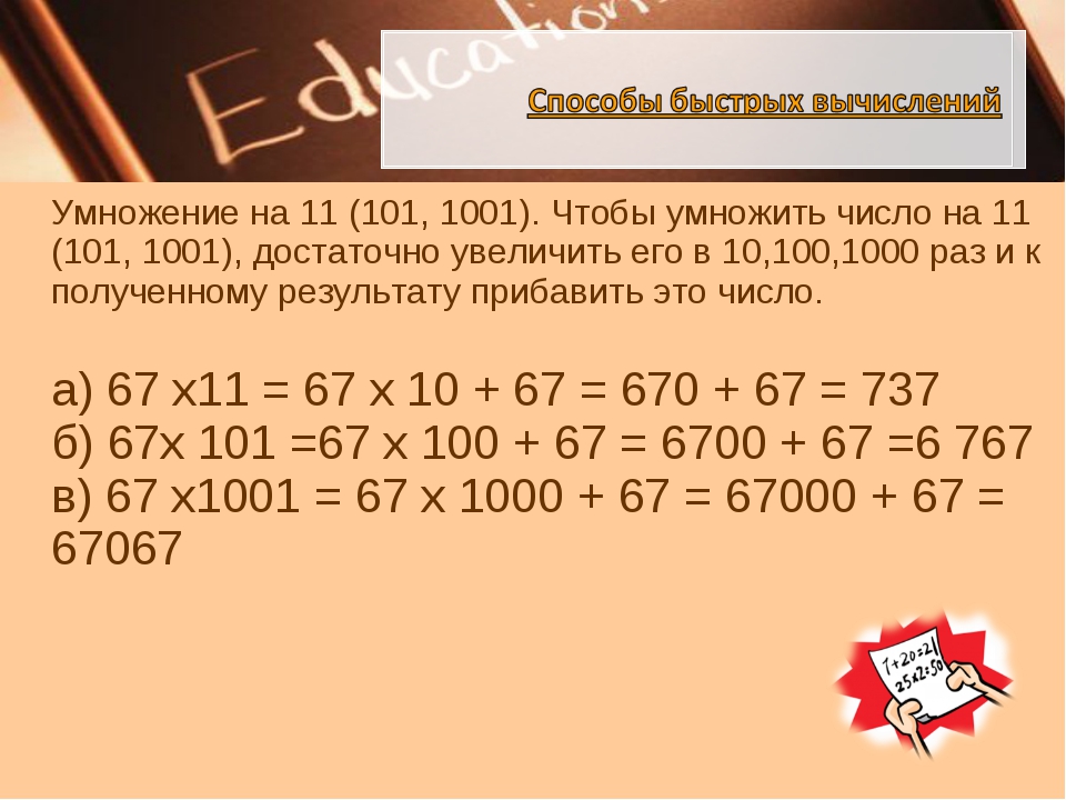 — число, оканчивающееся на 0, можно разделить на 10. Если оно оканчивается на 0 или 5, его можно разделить на 10. разделить на 5.Надеюсь, вы узнали несколько новых математических приемов и применили их для математических вычислений. Мы надеемся, что вы получили удовольствие от чтения этой статьи. Однако, если у вас есть дополнительные вопросы, не стесняйтесь, просто сообщите нам об этом в разделе комментариев, и мы предоставим вам обновление. Оставайтесь с нами на Embibe , чтобы получать последние новости и обновления о том, как решать задачи по математике самым быстрым способом.