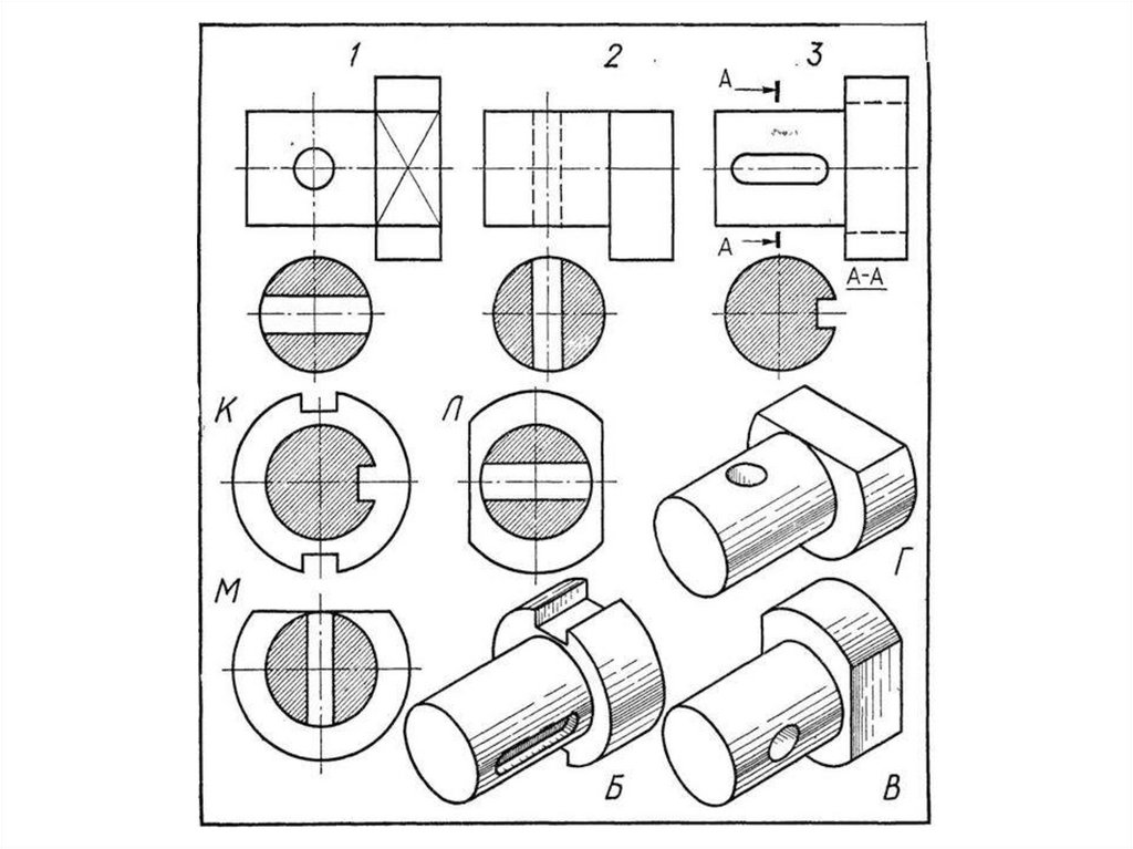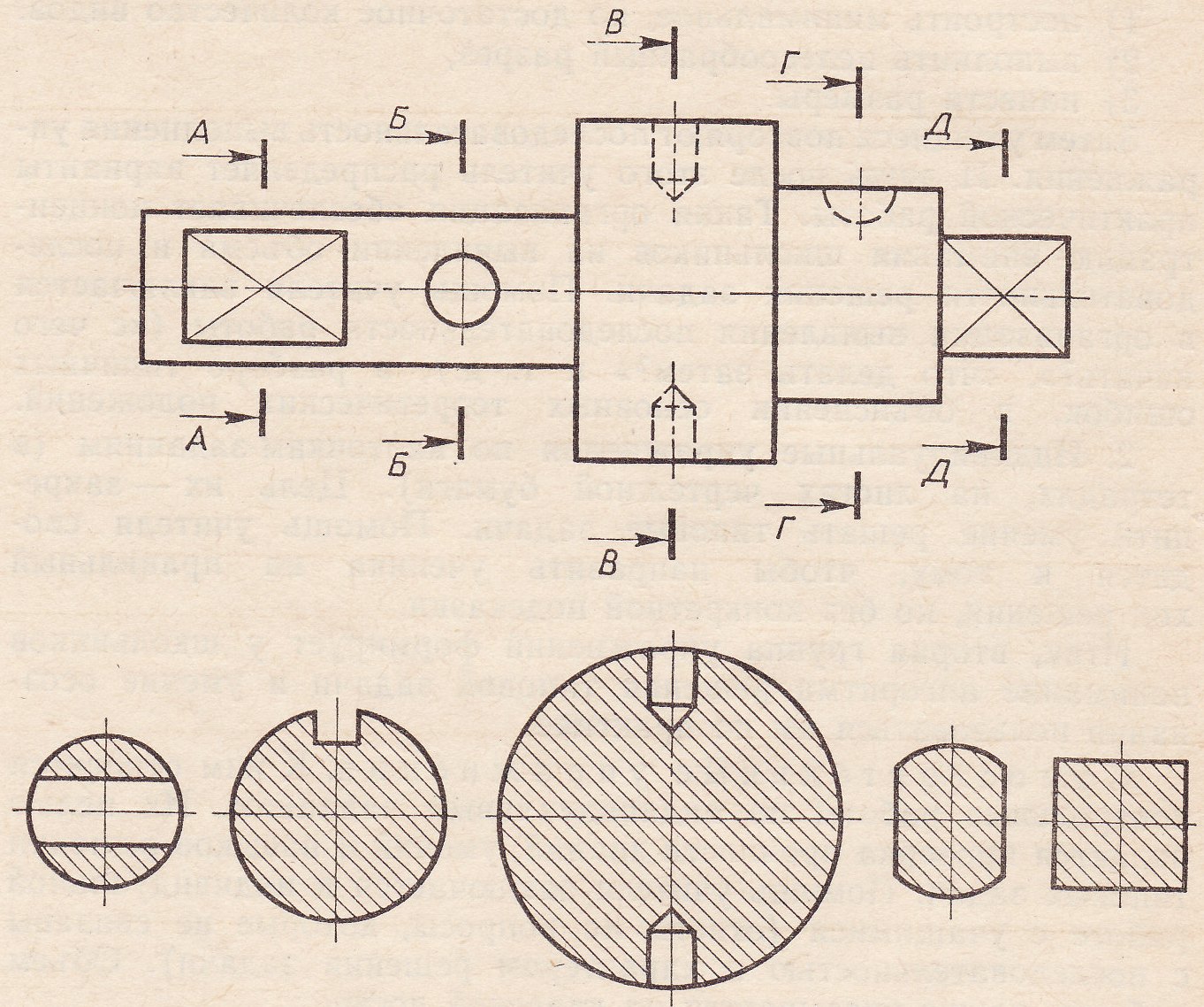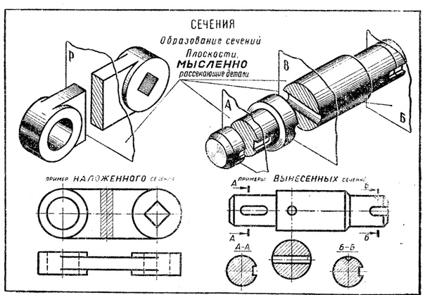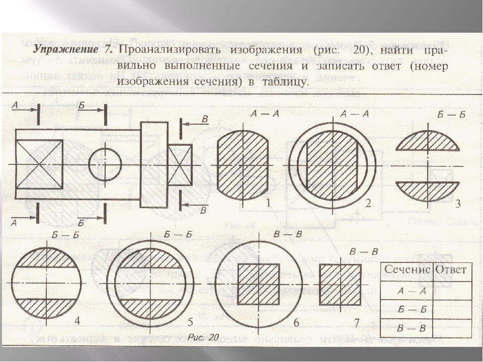 Сечение используется, чтобы показать детали компонента или сборки на определенной плоскости, которая известна как плоскость сечения.На рис. 8.1 показан простой кронштейн, на котором необходимо нарисовать три вида в разрезе. Предположим, у вас был кронштейн, и вырежьте его ножовкой по линии, обозначенной B-B. Если вы посмотрите в направлении стрелок, то вид с торца B-B в решении (рис. 8.2) будет обращен к наблюдателю, а поверхность, обозначенная перекрестной штриховкой, будет реальным металлом, который пила прорезала. В качестве альтернативы, если бы мы разрезали по линии C-C, то результатом был бы план в решении. Довольно частный случай существует вдоль плоскости A-A, когда на самом деле тонкая ткань в этой точке была разрезана.Теперь, если бы мы заштриховали всю поверхность, которую мы прорезали на этой плоскости, мы бы создали ложное впечатление твердости. Чтобы обеспечить более реалистичный рисунок, полотно определяется сплошной линией, а только базовая и перпендикулярные части заштрихованы. Обратите внимание, что перекрестная штриховка никогда не выполняется между пунктирными линиями, следовательно, полная линия между полотном и остальной частью детали. Тем не менее, граница в этой точке теоретически представляет собой пунктирную линию