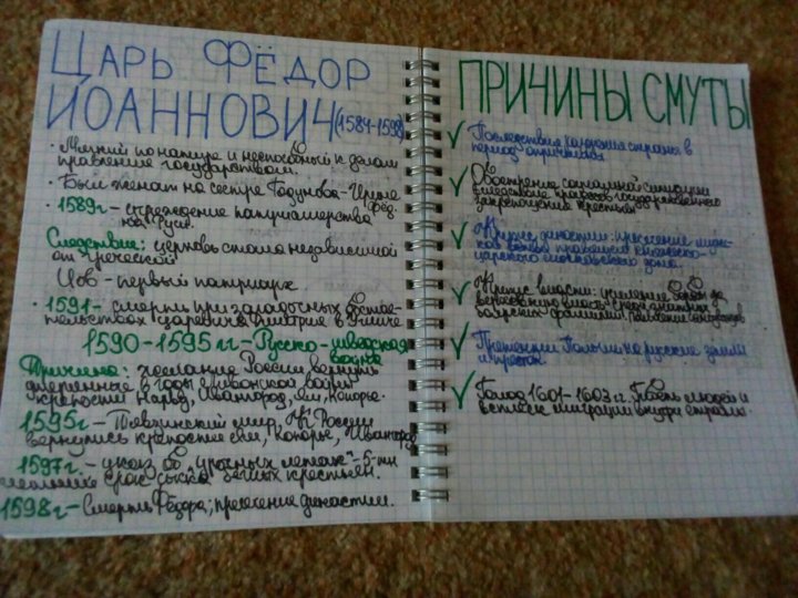 Одна тема визуально отделяется от другой. Тоже самое нужно сделать с заголовками, подзаголовками и терминами (можно подчеркнуть слово, тему, название термина). Также рекомендуется делать отступы для обозначения нового пункта плана, абзаца. Формулы, правила, законы обводят в рамку.