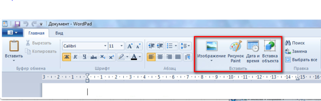 В старых версиях WordPad необычные команды были спрятаны в меню. При необходимости вставить дату и время в документ не было доступной кнопки на панели инструментов. Нужно было использовать меню вставка. В новых версиях WordPad просто нужно нажать на кнопку.