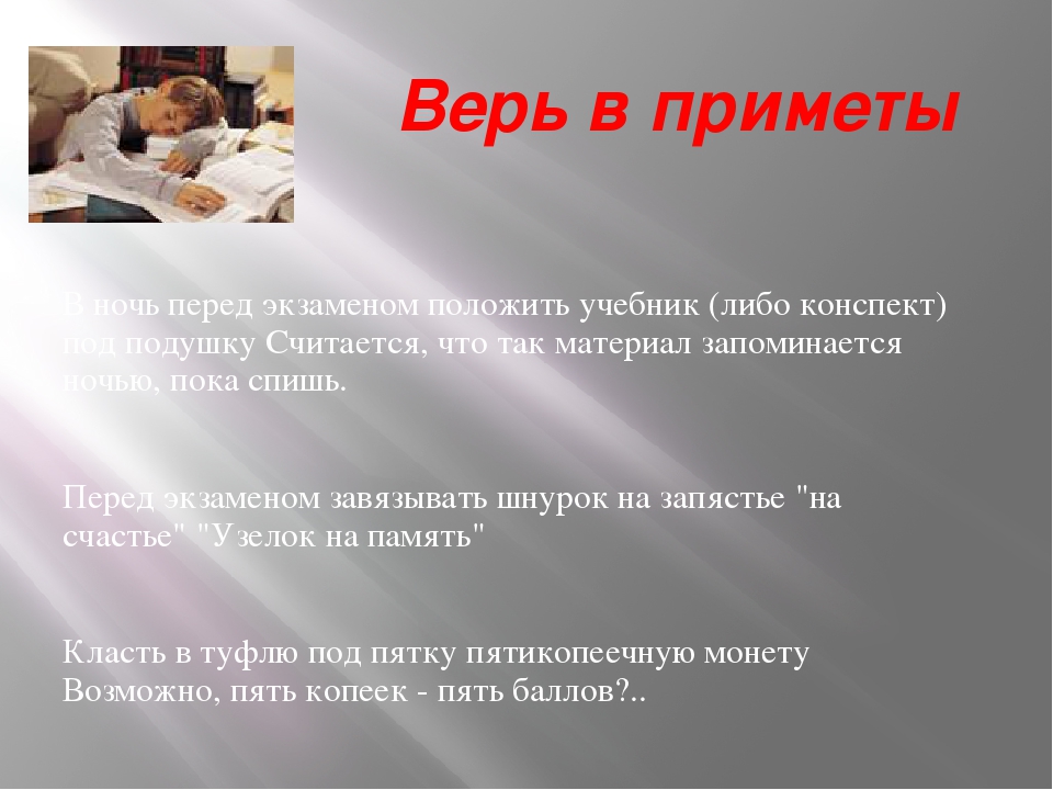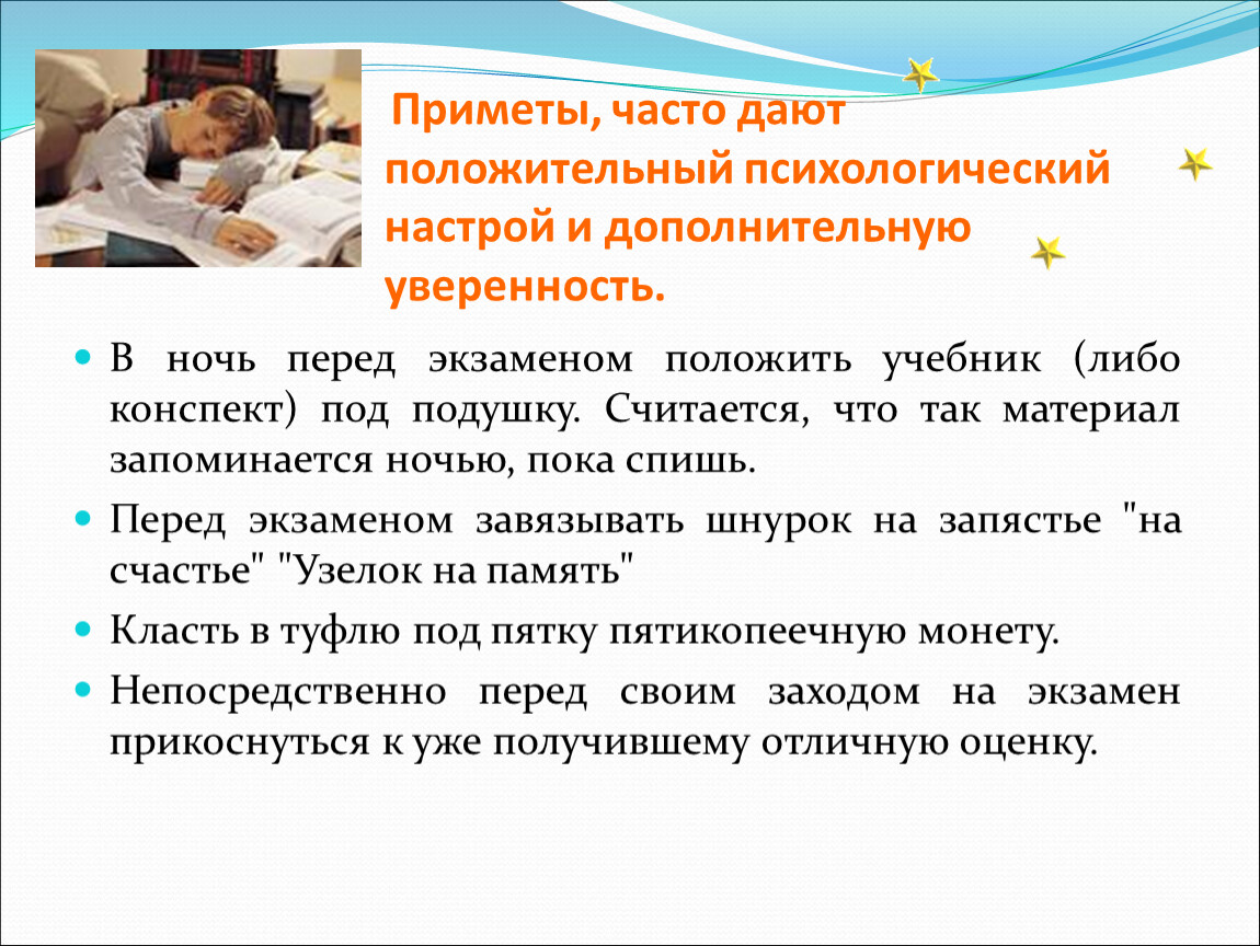 Вопрос: Вот ситуация – студент готовился, учил, все знает. Сел отвечать на вопрос, а в голове пусто, как себя настроить?