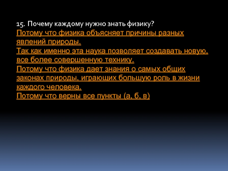 Но знание физических закономерностей устройства нашего мира так или иначе нужно знать любому человеку. Это такая же часть общекультурного базиса, как и знание основных правил русского языка, как ориентация в географии или в истории, как знакомство с общими принципами биологической эволюции.
