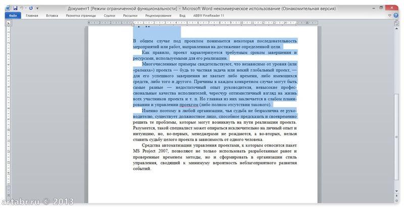 - Выделите текст, который нужно скопировать и вставить в другой файл.