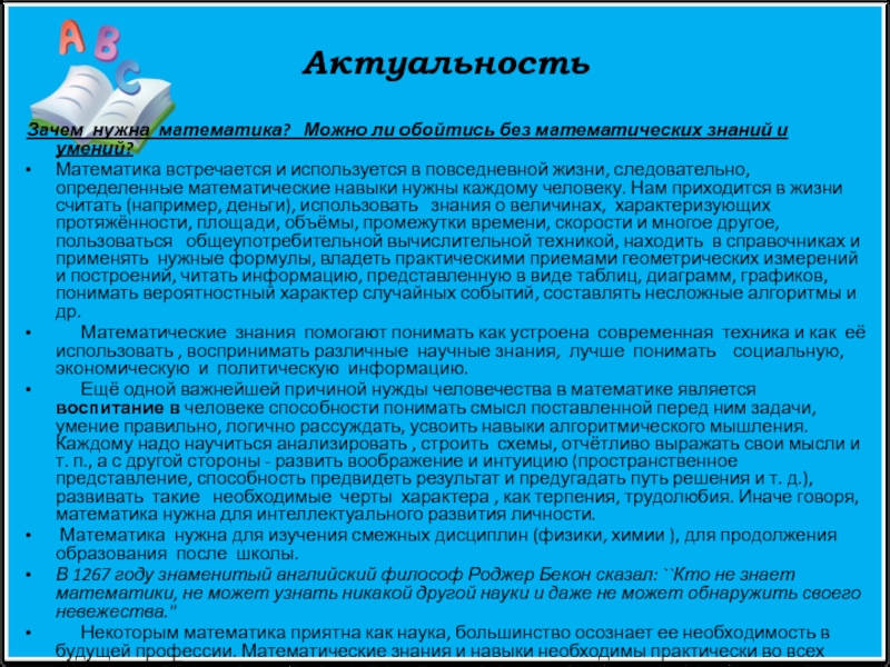 Без знания основных математических законов и умения ими пользоваться в современном мире становится очень трудно обучаться практически любым профессиям. С цифрами и операциями с ними имеют дело не только финансисты и бухгалтера.