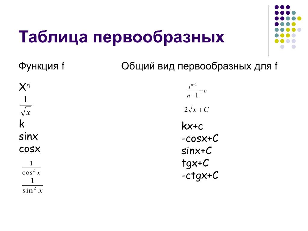 Первообразная и интеграл: формулы с примерами решения