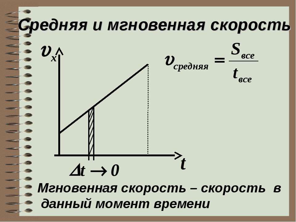 Π‘ΠΊΠΎΡΠΎΡΡΡ ΡΠ΅Π»Π° Π·Π° Π΄ΠΎΡΡΠ°ΡΠΎΡΠ½ΠΎ ΠΌΠ°Π»ΡΠΉ ΠΏΡΠΎΠΌΠ΅ΠΆΡΡΠΎΠΊ Π²ΡΠ΅ΠΌΠ΅Π½ΠΈ ΠΈ Π½Π°Π·ΡΠ²Π°ΡΡ Π΅Π³ΠΎ ΡΠΊΠΎΡΠΎΡΡΡΡ Π² Π΄Π°Π½Π½ΡΠΉ ΠΌΠΎΠΌΠ΅Π½Ρ Π²ΡΠ΅ΠΌΠ΅Π½ΠΈ t, Π΅ΡΠ»ΠΈ ΡΡΠΎΡ ΠΌΠΎΠΌΠ΅Π½Ρ Π²ΡΠ΅ΠΌΠ΅Π½ΠΈ Π½Π°Ρ ΠΎΠ΄ΠΈΡΡΡ Π² ΠΏΡΠΎΠΌΠ΅ΠΆΡΡΠΊΠ΅ Ξt. Π Π±ΠΎΠ»Π΅Π΅ ΡΠΎΡΠ½ΠΎΠ΅ Π΅Π΅ Π½Π°Π·Π²Π°Π½ΠΈΠ΅ β ΠΌΠ³Π½ΠΎΠ²Π΅Π½Π½Π°Ρ ΡΠΊΠΎΡΠΎΡΡΡ.