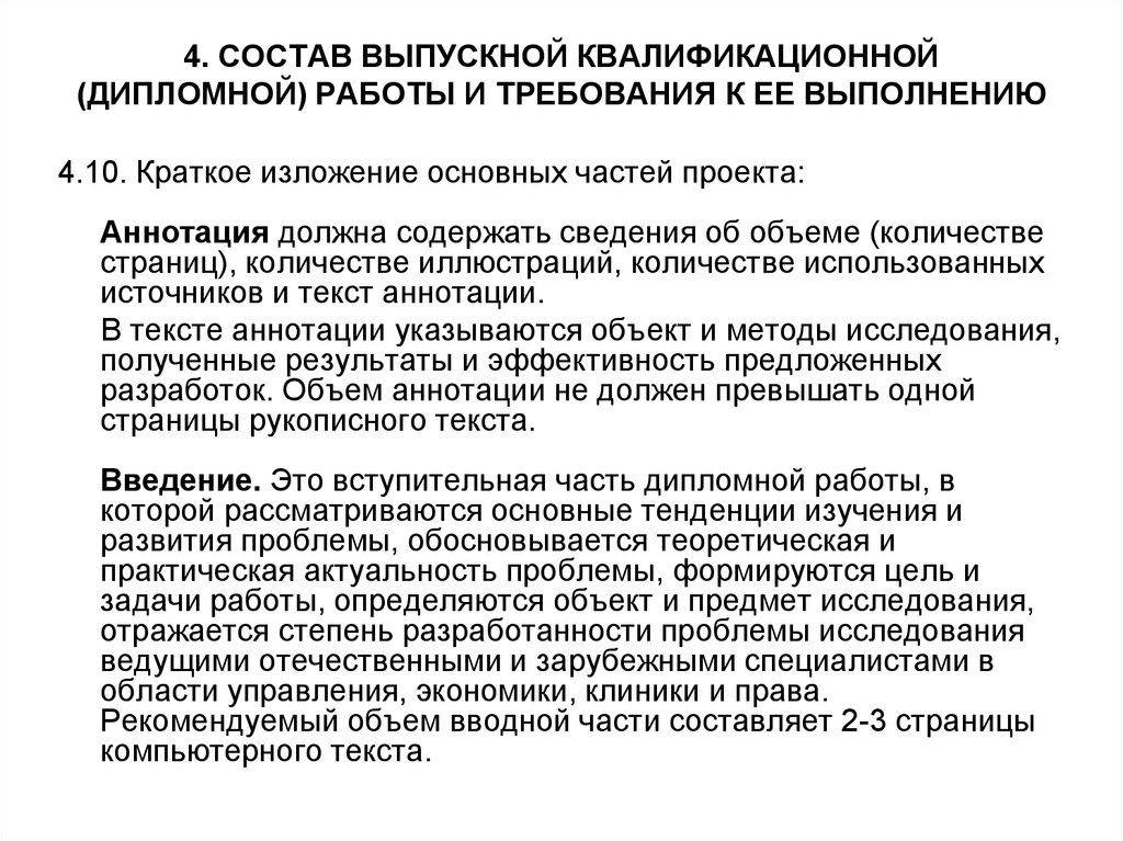 Независимо от направленности исследования (гуманитарной, технической) структура аннотации меняется незначительно. Информация в аннотации располагается в строго установленном порядке, образцом которой служит структура диссертации: