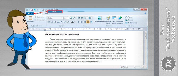 Быстро открыть WordPad на компьютере или ноутбуке можно с помощью следующего алгоритма: