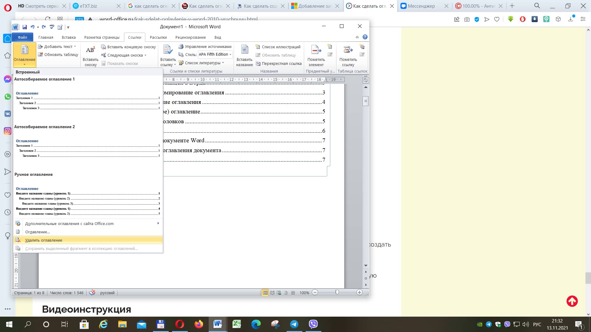 «Как сделать содержание в ворде?» — Яндекс Кью