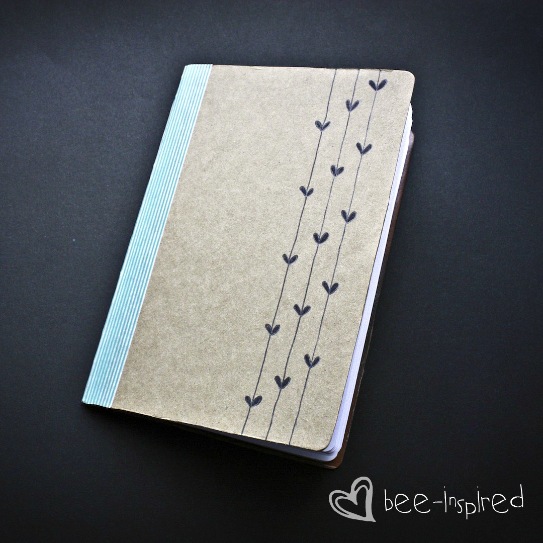 Закрепите стежки : завяжите узел в начале и конце стежка и обрежьте лишнюю нить. Как вы заметили, я спрятала узлы на внутренней части блокнота.