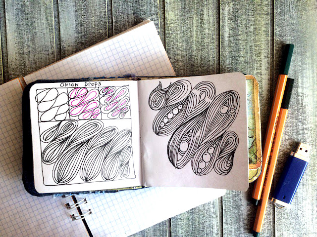Теперь сосредоточьтесь и придумайте узор. Приклеивайте готовые полоски плотно друг к дружке. У Вас должен получится яркий уникальный сюрреалистический узор на обложке тетради.