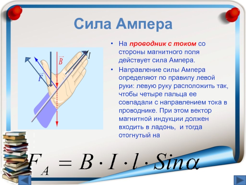 Сила Ампера. Правило левой руки | Физика. Закон, формула, лекция, шпаргалка, шпора, доклад, ГДЗ, решебник, конспект, кратко