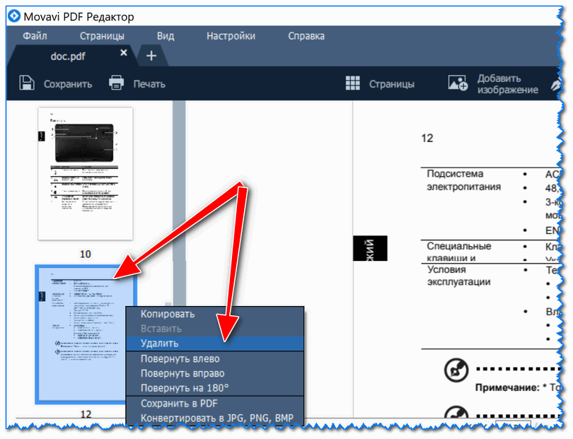 Удалить страницу — удаление выбранной страницы в окне предварительного просмотра.