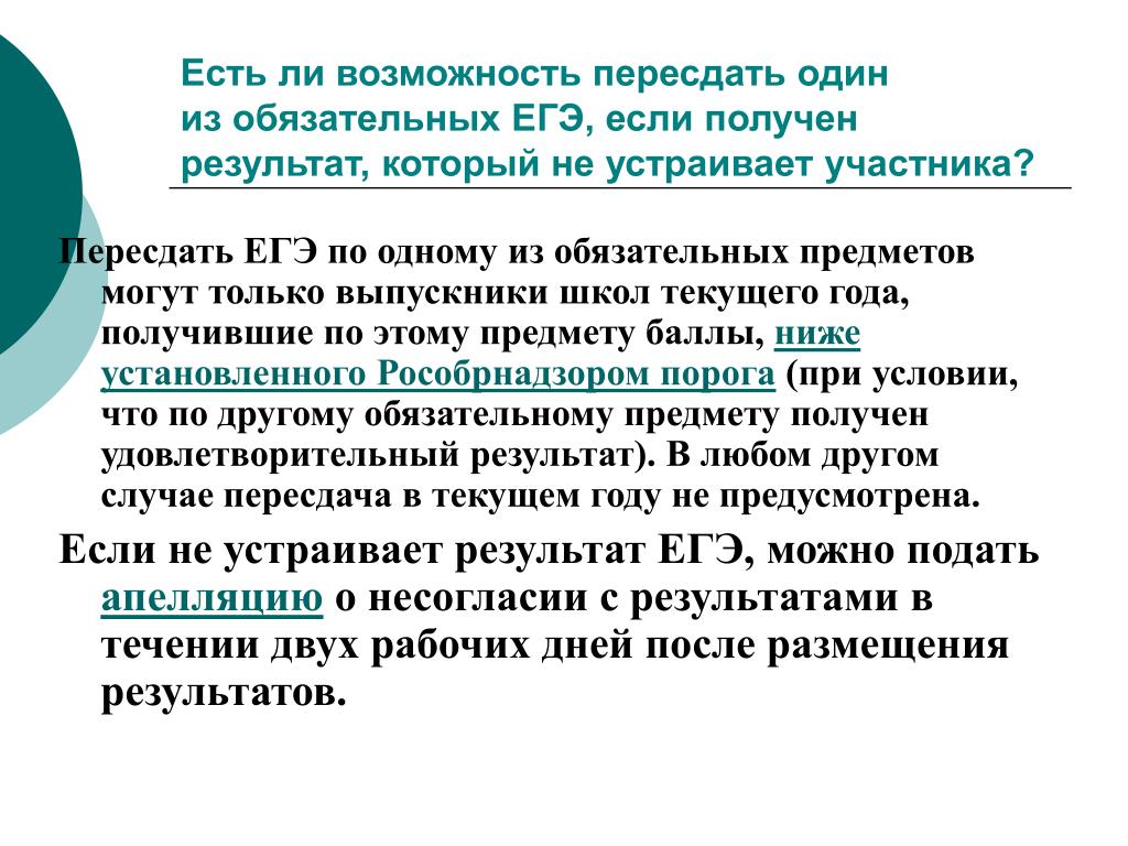 - Нельзя пересдать ЕГЭ по двум предметам сразу.
