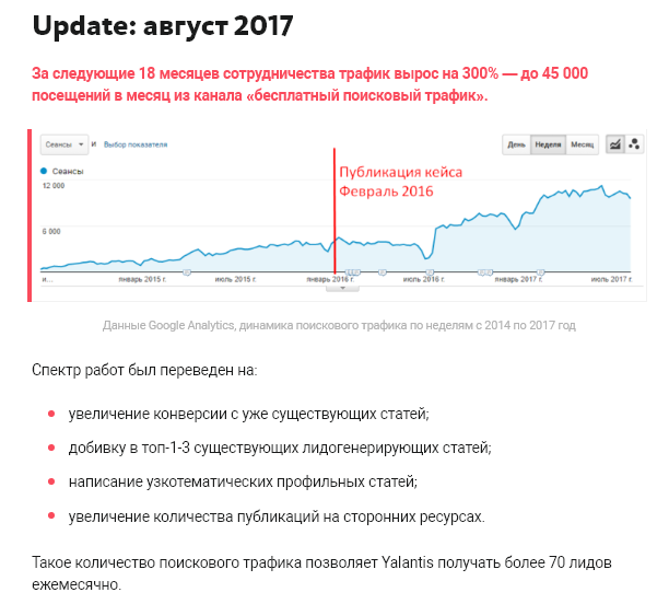 - Дополнительный трафик на сайт. Как правило, в кейсе есть ссылка на сайт компании. Это может дать ему дополнительный трафик. Кроме того, ссылка с внешнего ресурса повысит авторитет сайта клиента в глазах поисковых систем.