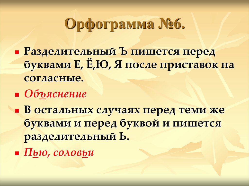 – Когда пишется твердый разделительный знак? Когда пишется мягкий разделительный знак? Обозначим орфограмму.