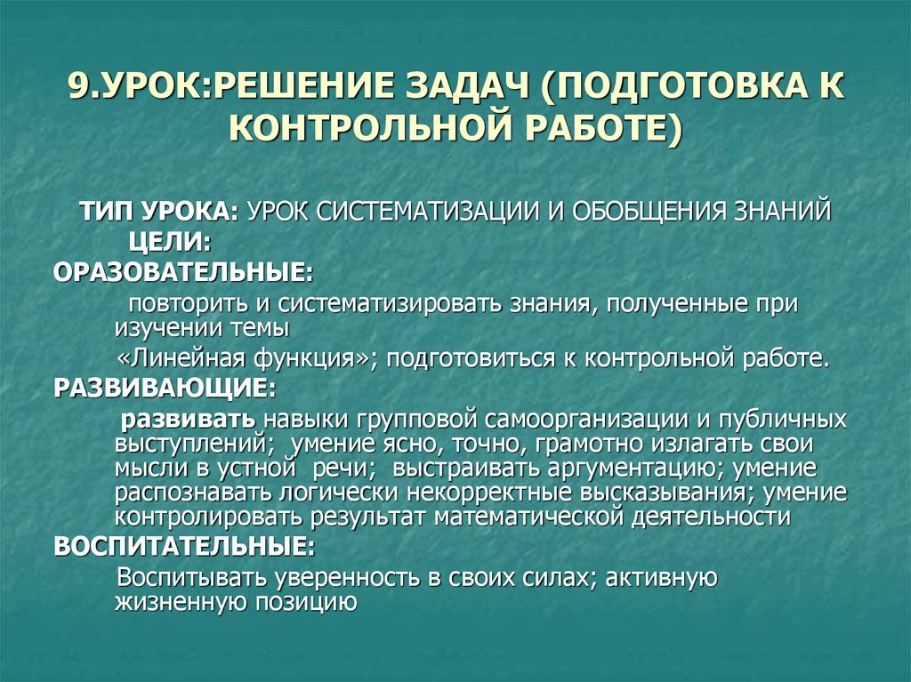 Этот листок нужно всегда держать возле себя и повторять материал, когда удобно. И перед самой контрольной следует пробежать его, чтобы не листать все книги и конспекты. - Важным моментом в подготовке к контрольной работе есть