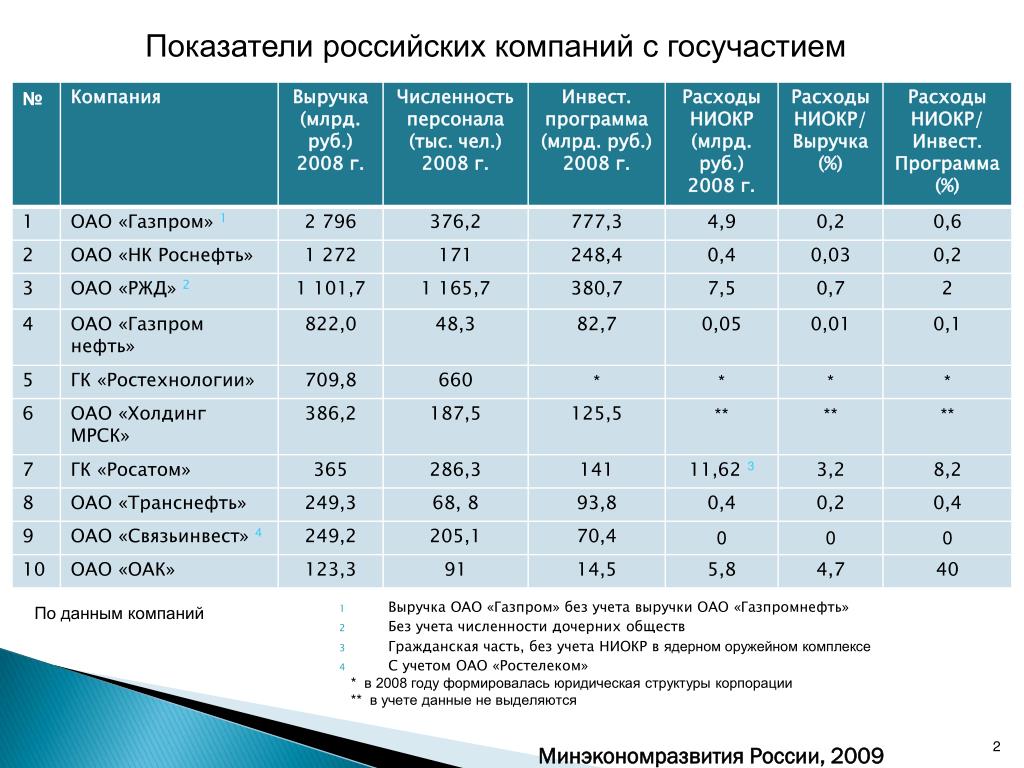 Газпром — крупнейшая компания России и одна из крупнейший в мире. На 2021 год общее количество сотрудников компании превысило число в 550 тысяч. человек. В составе компании находятся многие обособленные подразделения, как, например, Газпромнефть, но основные направления Газпрома — это добыча и продажа газа.