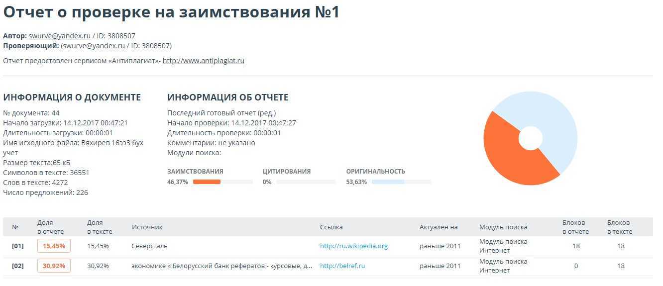 Сервис поиска плагиата был разработан для того, чтобы находить совпадения в текстах. Если автор скопировал чужой текст, то он получит низкий показатель оригинальности и высокий процент плагиата.