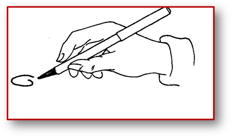 Традиционный способ держать ручку — «штатив» (см. рис. 2) — большой и указательный пальцы помещаются по обе стороны от карандаша, а средний палец находится под ним.