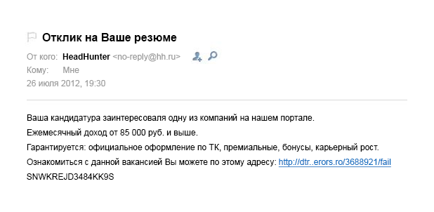 В результате электронное письмо с Вашим резюме не может быть прочитано.